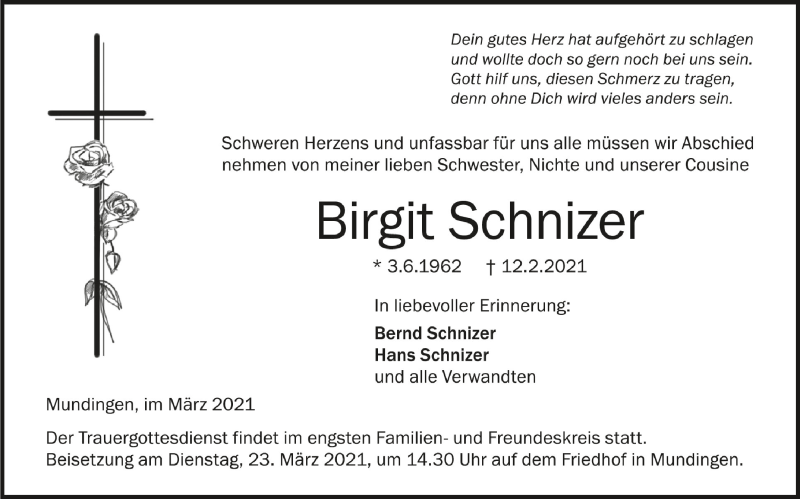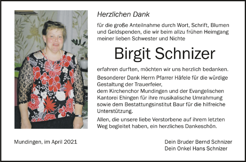 Hier finden Sie alle Traueranzeigen aus der Zeitung, die bisher für Birgit Schnizer erschienen sind. Weitere Traueranzeigen, die in der Zeitung erscheinen, werden hier ebenfalls aufgelistet
