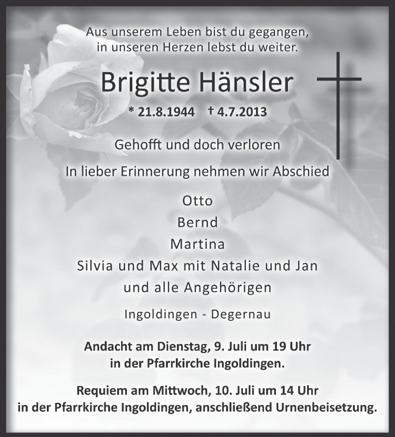 Hier finden Sie alle Traueranzeigen aus der Zeitung, die bisher für Birgitte Hänsler erschienen sind. Weitere Traueranzeigen, die in der Zeitung erscheinen, werden hier ebenfalls aufgelistet