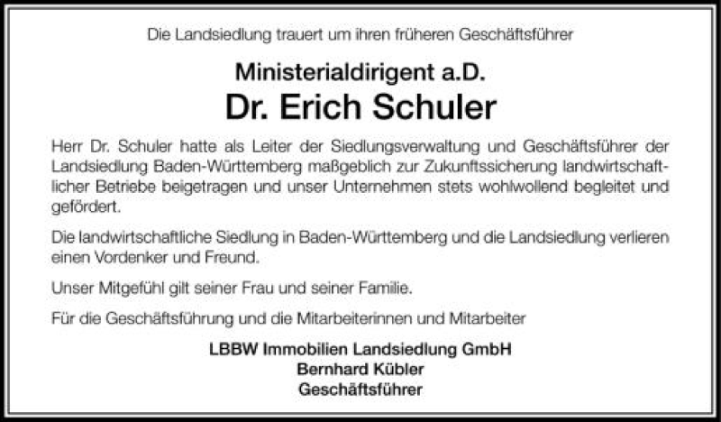 Hier finden Sie alle Traueranzeigen aus der Zeitung, die bisher für Erich Schuler erschienen sind. Weitere Traueranzeigen, die in der Zeitung erscheinen, werden hier ebenfalls aufgelistet