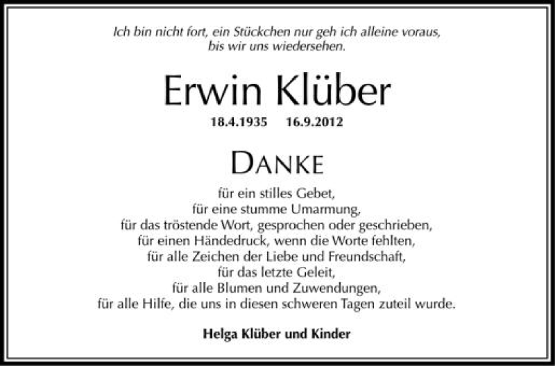 Hier finden Sie alle Traueranzeigen aus der Zeitung, die bisher für Erwin Klüber erschienen sind. Weitere Traueranzeigen, die in der Zeitung erscheinen, werden hier ebenfalls aufgelistet