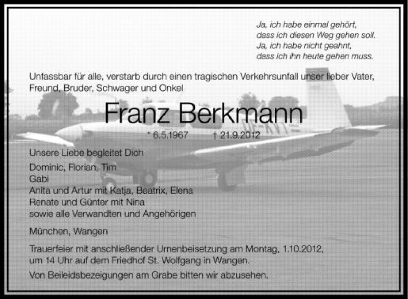 Hier finden Sie alle Traueranzeigen aus der Zeitung, die bisher für Franz Berkmann erschienen sind. Weitere Traueranzeigen, die in der Zeitung erscheinen, werden hier ebenfalls aufgelistet
