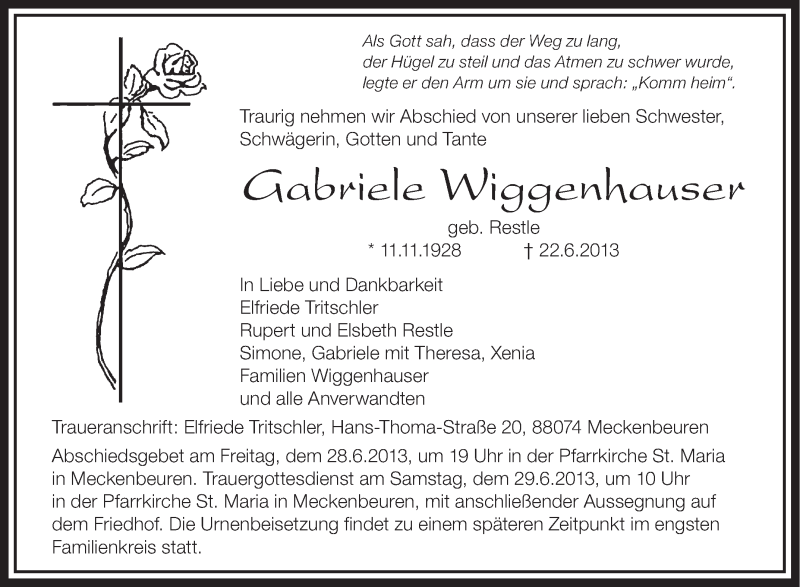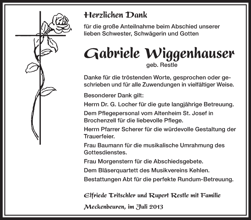 Hier finden Sie alle Traueranzeigen aus der Zeitung, die bisher für Gabriele Wiggenhauser erschienen sind. Weitere Traueranzeigen, die in der Zeitung erscheinen, werden hier ebenfalls aufgelistet