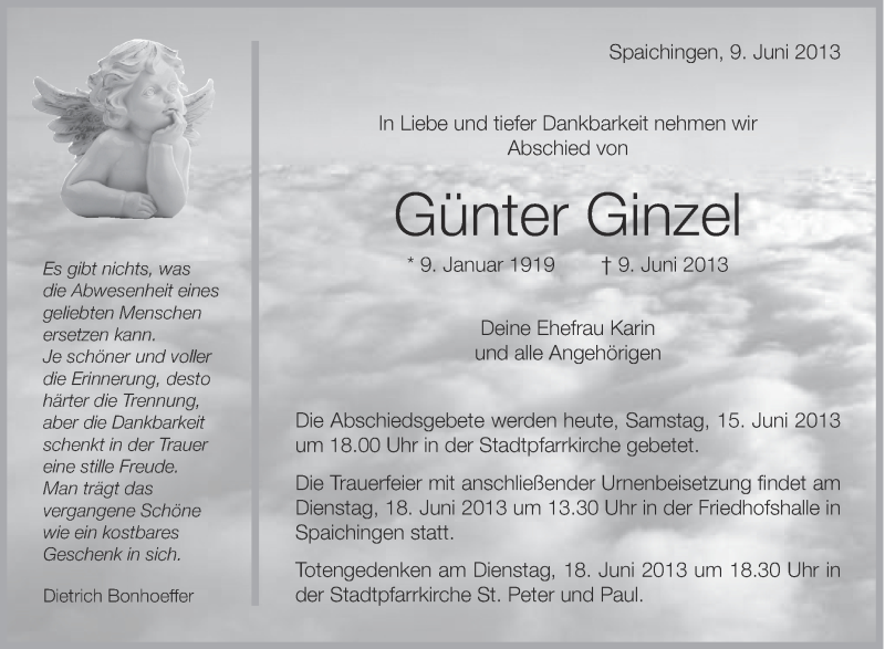 Hier finden Sie alle Traueranzeigen aus der Zeitung, die bisher für Günter Ginzel erschienen sind. Weitere Traueranzeigen, die in der Zeitung erscheinen, werden hier ebenfalls aufgelistet