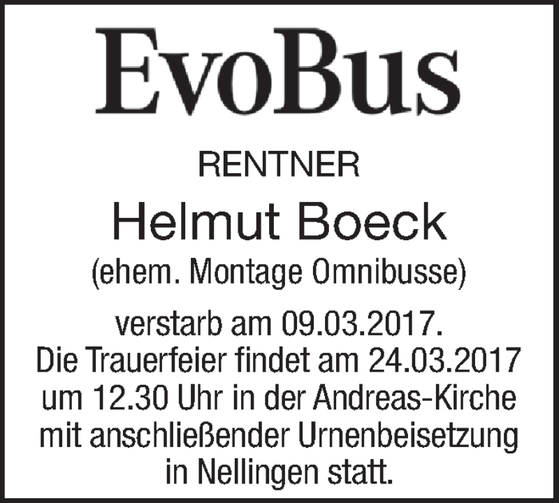 Hier finden Sie alle Traueranzeigen aus der Zeitung, die bisher für Helmut Boeck erschienen sind. Weitere Traueranzeigen, die in der Zeitung erscheinen, werden hier ebenfalls aufgelistet