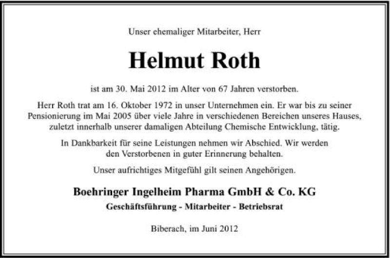 Hier finden Sie alle Traueranzeigen aus der Zeitung, die bisher für Helmut Roth erschienen sind. Weitere Traueranzeigen, die in der Zeitung erscheinen, werden hier ebenfalls aufgelistet