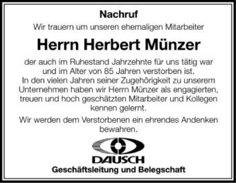 Hier finden Sie alle Traueranzeigen aus der Zeitung, die bisher für Herbert Münzer erschienen sind. Weitere Traueranzeigen, die in der Zeitung erscheinen, werden hier ebenfalls aufgelistet