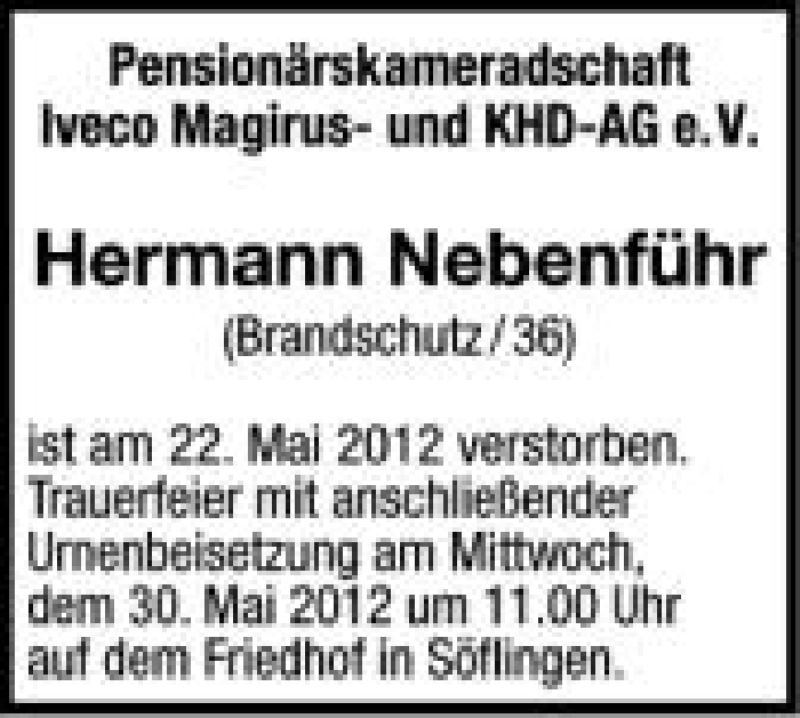 Hier finden Sie alle Traueranzeigen aus der Zeitung, die bisher für Hermann Nebenführ erschienen sind. Weitere Traueranzeigen, die in der Zeitung erscheinen, werden hier ebenfalls aufgelistet