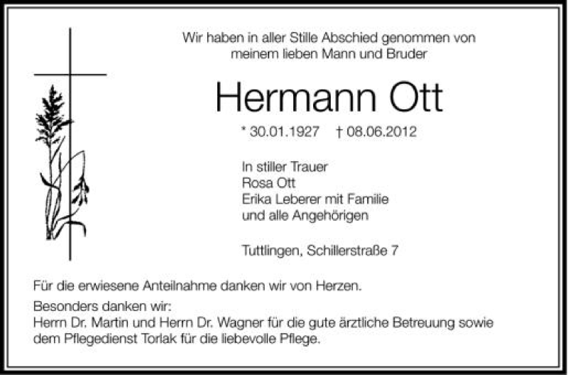 Hier finden Sie alle Traueranzeigen aus der Zeitung, die bisher für Hermann Ott erschienen sind. Weitere Traueranzeigen, die in der Zeitung erscheinen, werden hier ebenfalls aufgelistet