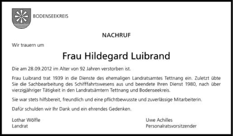Hier finden Sie alle Traueranzeigen aus der Zeitung, die bisher für Hildegard Luibrand erschienen sind. Weitere Traueranzeigen, die in der Zeitung erscheinen, werden hier ebenfalls aufgelistet