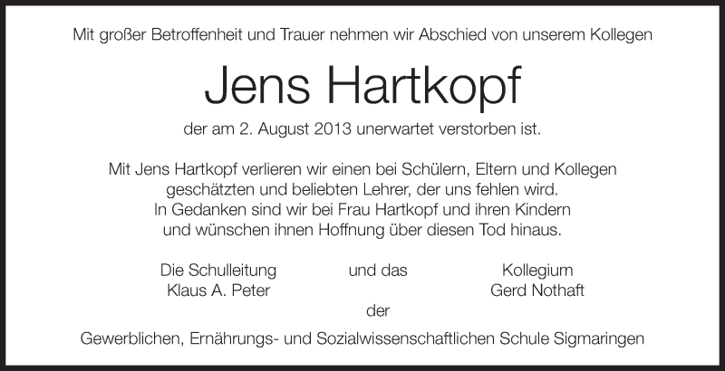 Hier finden Sie alle Traueranzeigen aus der Zeitung, die bisher für Jens Hartkopf erschienen sind. Weitere Traueranzeigen, die in der Zeitung erscheinen, werden hier ebenfalls aufgelistet