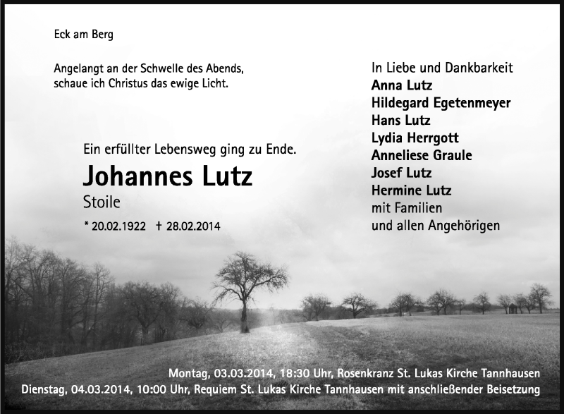 Hier finden Sie alle Traueranzeigen aus der Zeitung, die bisher für Johannes Lutz erschienen sind. Weitere Traueranzeigen, die in der Zeitung erscheinen, werden hier ebenfalls aufgelistet