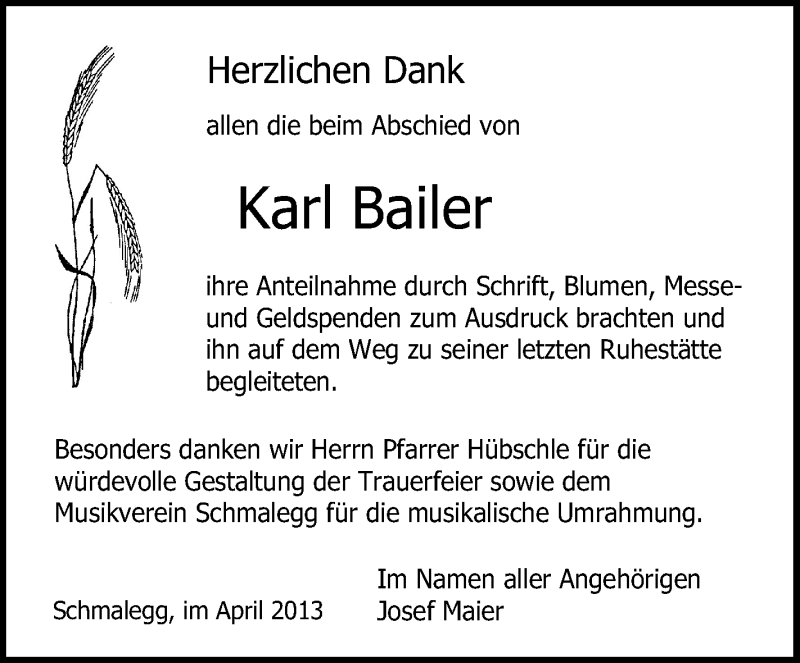Hier finden Sie alle Traueranzeigen aus der Zeitung, die bisher für Karl Bailer erschienen sind. Weitere Traueranzeigen, die in der Zeitung erscheinen, werden hier ebenfalls aufgelistet