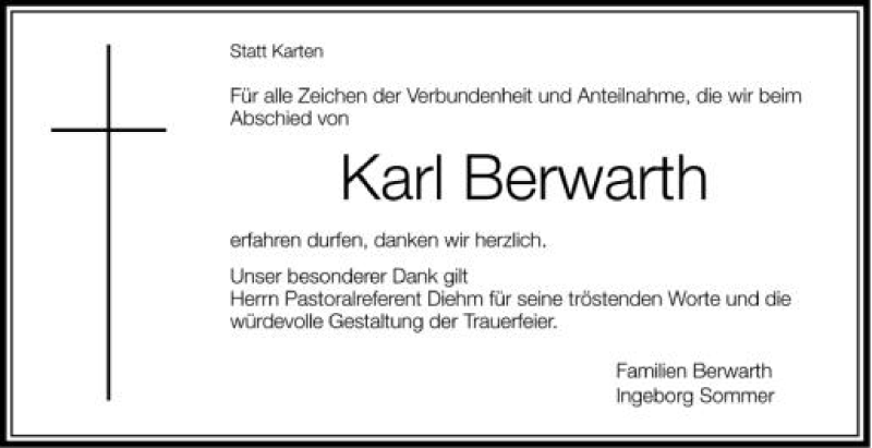 Hier finden Sie alle Traueranzeigen aus der Zeitung, die bisher für Karl Berwarth erschienen sind. Weitere Traueranzeigen, die in der Zeitung erscheinen, werden hier ebenfalls aufgelistet