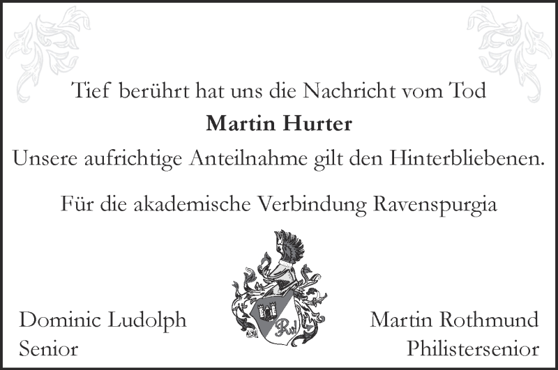 Hier finden Sie alle Traueranzeigen aus der Zeitung, die bisher für Martin Hurter erschienen sind. Weitere Traueranzeigen, die in der Zeitung erscheinen, werden hier ebenfalls aufgelistet