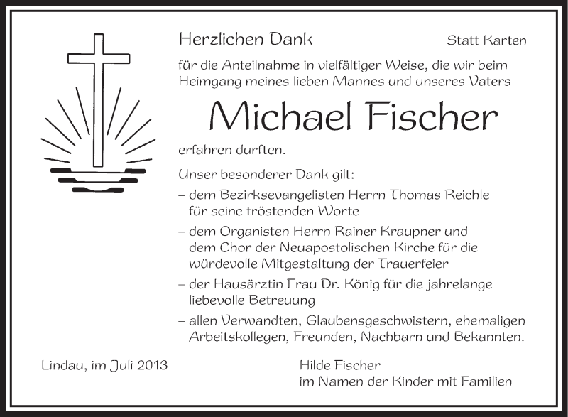 Hier finden Sie alle Traueranzeigen aus der Zeitung, die bisher für Michael Fischer erschienen sind. Weitere Traueranzeigen, die in der Zeitung erscheinen, werden hier ebenfalls aufgelistet