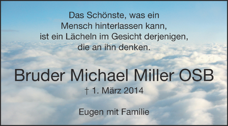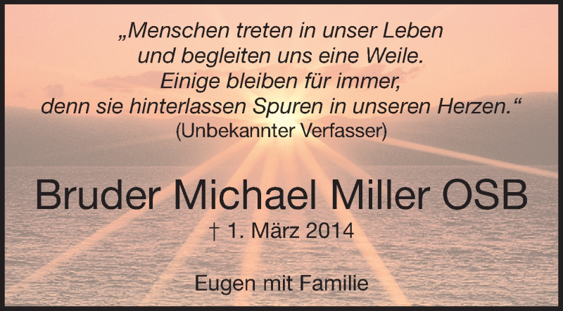 Hier finden Sie alle Traueranzeigen aus der Zeitung, die bisher für Michael Miller erschienen sind. Weitere Traueranzeigen, die in der Zeitung erscheinen, werden hier ebenfalls aufgelistet