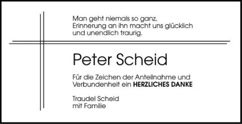 Hier finden Sie alle Traueranzeigen aus der Zeitung, die bisher für Peter Scheid erschienen sind. Weitere Traueranzeigen, die in der Zeitung erscheinen, werden hier ebenfalls aufgelistet