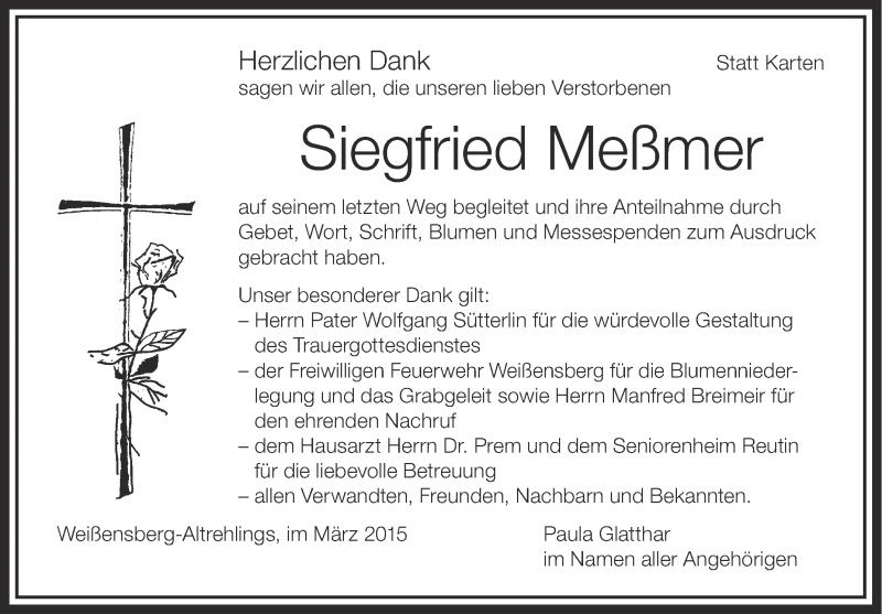 Hier finden Sie alle Traueranzeigen aus der Zeitung, die bisher für Siegfried Meßmer erschienen sind. Weitere Traueranzeigen, die in der Zeitung erscheinen, werden hier ebenfalls aufgelistet