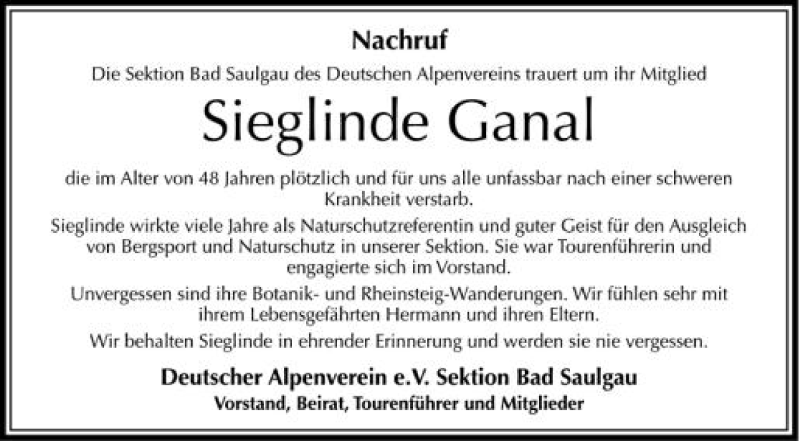 Hier finden Sie alle Traueranzeigen aus der Zeitung, die bisher für Sieglinde Ganal erschienen sind. Weitere Traueranzeigen, die in der Zeitung erscheinen, werden hier ebenfalls aufgelistet