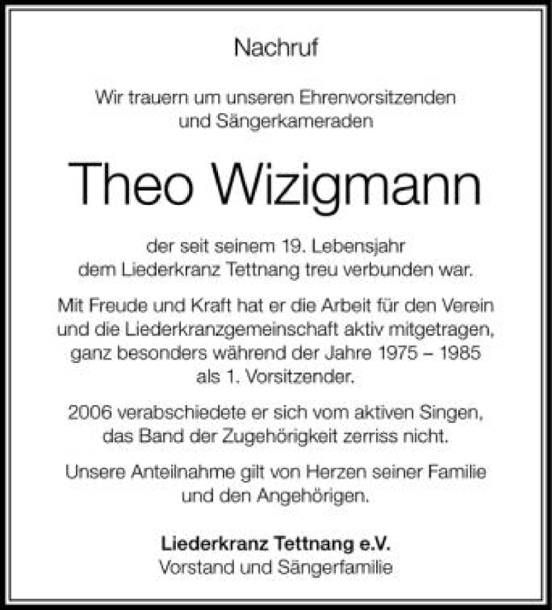 Hier finden Sie alle Traueranzeigen aus der Zeitung, die bisher für Theo Wizigmann erschienen sind. Weitere Traueranzeigen, die in der Zeitung erscheinen, werden hier ebenfalls aufgelistet