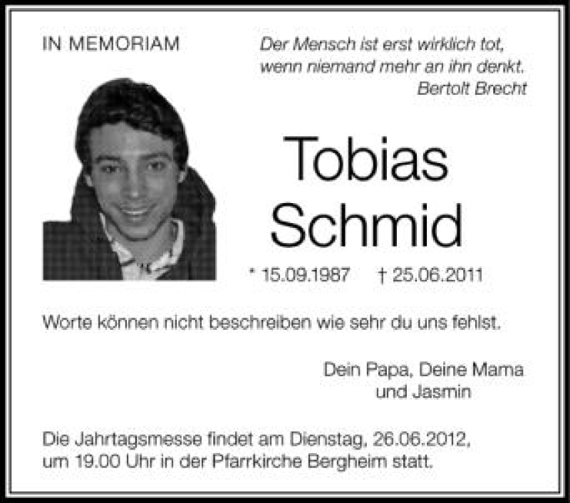 Hier finden Sie alle Traueranzeigen aus der Zeitung, die bisher für Tobias Schmid erschienen sind. Weitere Traueranzeigen, die in der Zeitung erscheinen, werden hier ebenfalls aufgelistet