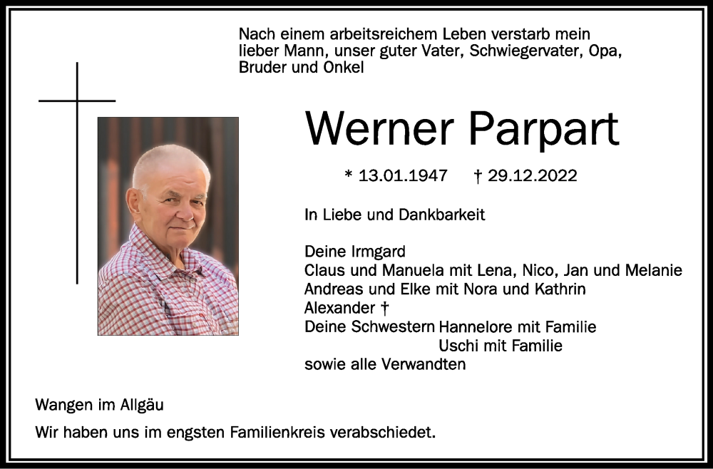 Hier finden Sie alle Traueranzeigen aus der Zeitung, die bisher für Werner Parpart erschienen sind. Weitere Traueranzeigen, die in der Zeitung erscheinen, werden hier ebenfalls aufgelistet