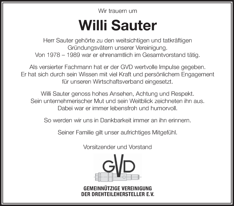 Hier finden Sie alle Traueranzeigen aus der Zeitung, die bisher für Willi Sauter erschienen sind. Weitere Traueranzeigen, die in der Zeitung erscheinen, werden hier ebenfalls aufgelistet