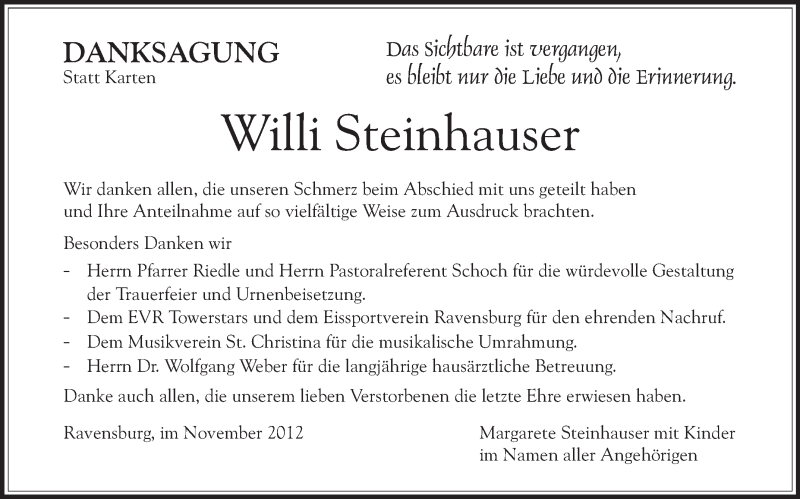 Hier finden Sie alle Traueranzeigen aus der Zeitung, die bisher für Willi Steinhauser erschienen sind. Weitere Traueranzeigen, die in der Zeitung erscheinen, werden hier ebenfalls aufgelistet